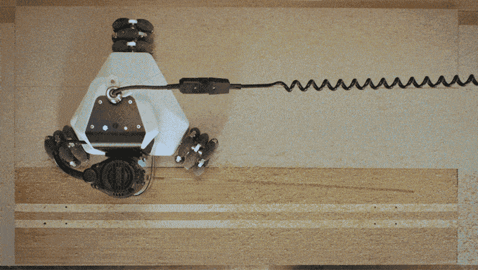 Amazing, huh? So how does it do this without running off the edge? Sensors. That’s how. After plugging in the power cord, you set two position sensors for the Goliath to locate itself in the work area. Once the CAD data is loaded, it gets to work cutting your design in the material.