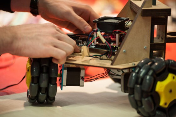 The second prototype was built on the premise of improving the Goliath’s accuracy and precision when making small movements. This led the design team to improve the motor, router, transmission, and wheel grip of the machine, testing a two-module wheel design.
