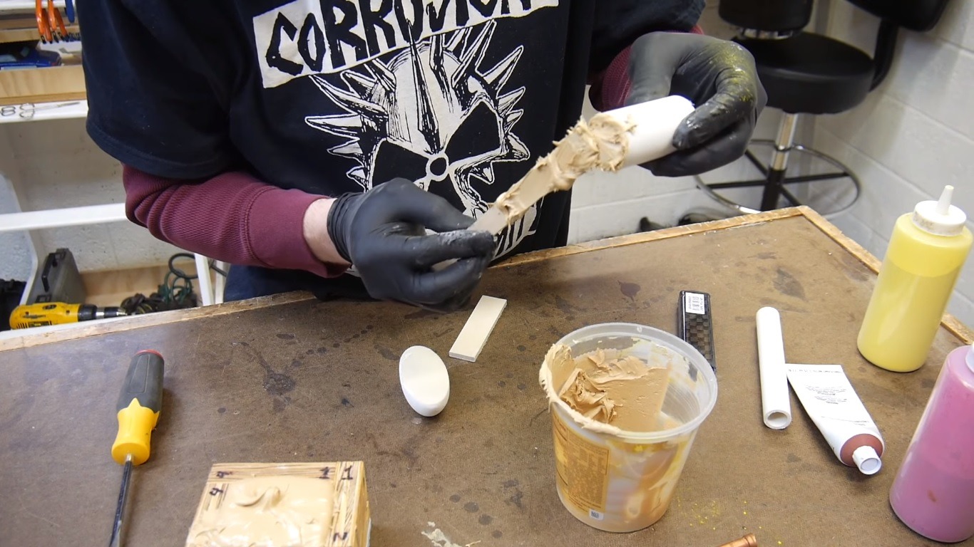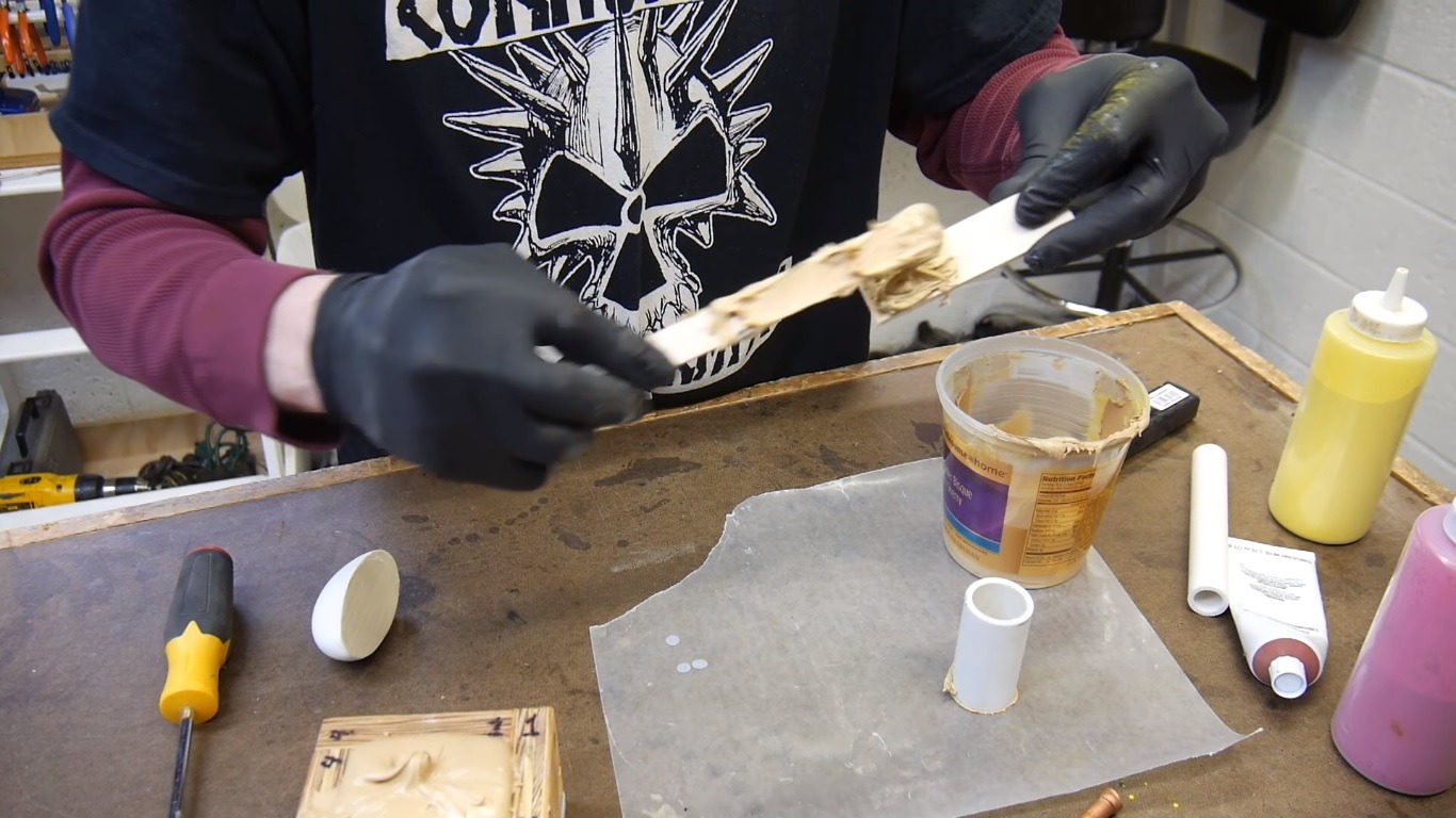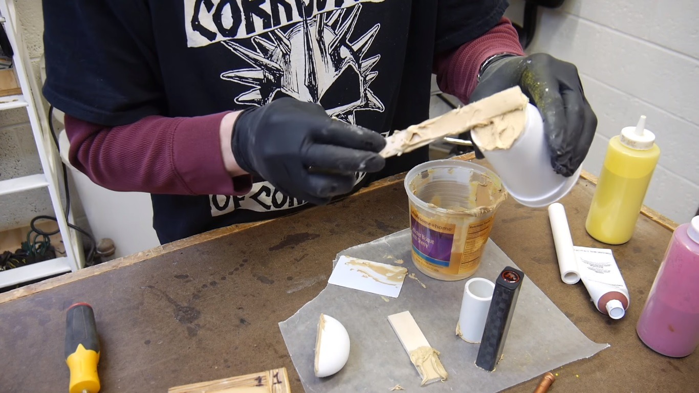 As the pitch for the product already says, Bondo makes for a pretty amazing filler. Because of the putty’s thickness, it can support its weight without dripping. Strebel demonstrates this by covering the ends of a small copper pipe and a PVC pipe. He then puts the later on a sheet of wax paper to prevent the Bondo from sticking to another surface while it dries.