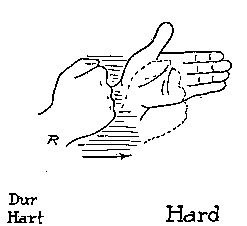- Next, you take a 3D model. Equivelently, the sign for Rock. (Make the sign for HARD, and indicate shape.)