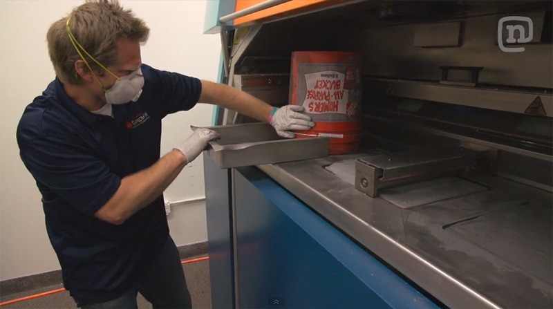 So, after all of that, the board was together and ready to shred. Snowboarder Matt Guess risked life and limb, taking the first ride. Although slower that other snowboards, the larger shovel nose and more traditional center area plowed the powder splendidly. A nice experiment and one that will hopefully lead to others, but somehow, I’m guessing they’re not ready to give up the press very soon.