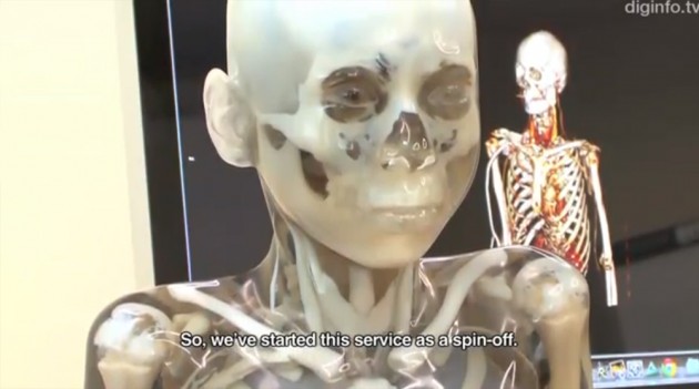 The model is produced using a technique called ‘Bio-texture‘ modeling which processes the image data. An Objet Eden260V is use to print the forms with the white resin baby surrounded by the clear resin mama. The prints are 3.5x 2.4×1.5 inches (90x60x40 millimeters) and run approximately US $1,250. Thank to Cory who wants to hold the inside of his own body as well, but doesn’t since it would be messy and weird.