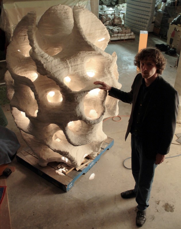 Around December last year I read about Joshua Harker’s Kickstarter campaign and wondered if something similar could be pulled off. I asked famed artist and designer Bathsheba Grossman if she’d be interested in printing one of her works in stone – she gave me the go-ahead and bam! We were off to the races. We raised some $3,300 on Indiegogo and 3D printed it with Enrico Dini’s DShape out of Pisa, Italy. It was, as he described it, ‘difficult to print’ but he did it. It was by far his most complicated print, but his ‘most magnificent’ piece as well.