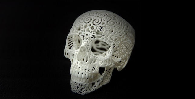 You can see a lot of Joshua’s sculptures in full 3D at his Sculpteo shop including the skull. The project has already hit the goal, but you can still get in on the action. To fund the project, just hit Joshua’s Crania Anatomica Filigre Kickstarter project. A $50 backing gets you a (small) Polyamide nylon 3D print of the skull and you’ll get a poster, shirt and wallpaper to boot. Skull-tastic.
