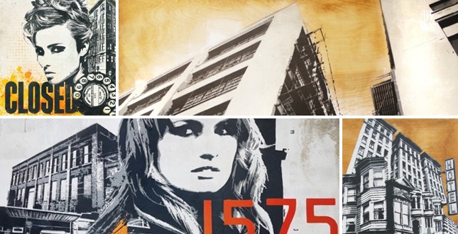 Soukup – His process is more tedious than most could probably handle. Razor, silkscreen and many hours to create these intricatly stenciled prints.