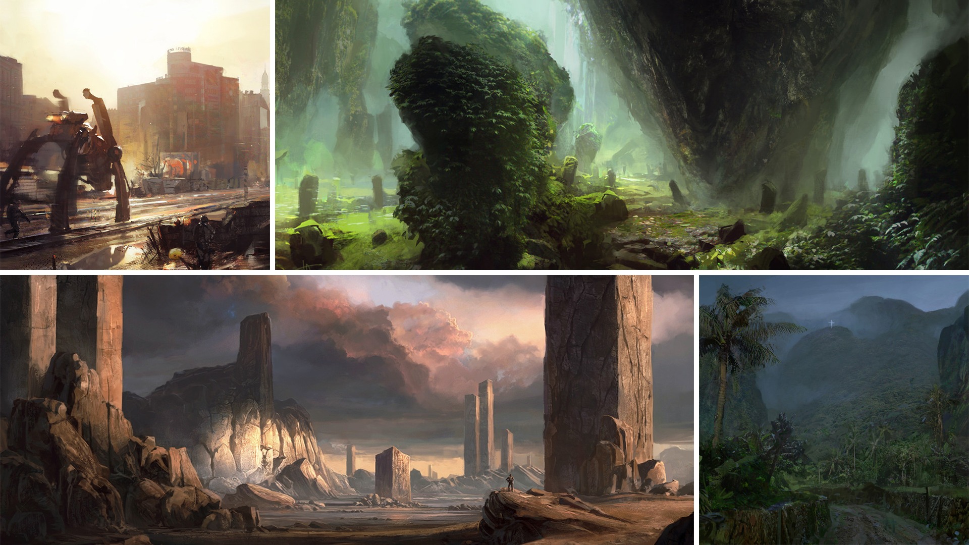 Tomas Honz – Beautiful environments, some digital, some traditional, and even throws on a mech on one. More please.