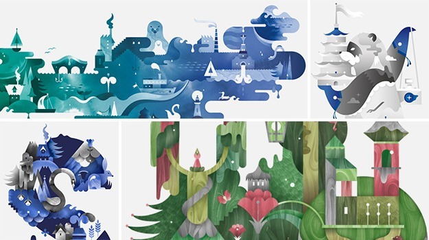 Janine Rewell – Decorative, geometric color compositions with a beautiful application of texture in these illustrations from the Helsinki-based artist.