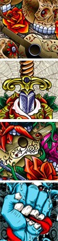 Joby Cummings – Insane. Awesome. Tattoo-style illustration. Lot’s of skulls, nice, thick lines and plenty of traditional inspiration to go along.