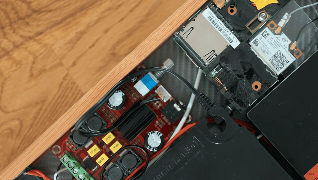 This step is something on the order of a PC “Out-of-Body-Experience.” The success of the All-in-One conversion depends on the ability of the donor components to work separately from the OEM chassis. This means patching the PC innards together and performing a power-up! Turns out in Matt’s build a power-up was doable, but not without a hitch. Unfortunately he found the power button is integrated into the keyboard module spoiling his plans to immediately discard the keyboard which is somewhat of a space hog.