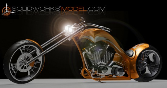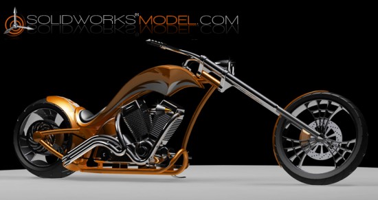 Renowned designer and SolidWorks user Jan-Willem Zuyderduyn from Eindhoven, Netherlands has exactly what you’re looking for, if what you’re looking for is a SolidWorks Chopper Tutorial… but, sweet giblets, it’s way more than a tutorial. He’s got it split up for level of difficulty and includes rendering settings, graphics and a rendering tutorial to do the bar hopper up right.