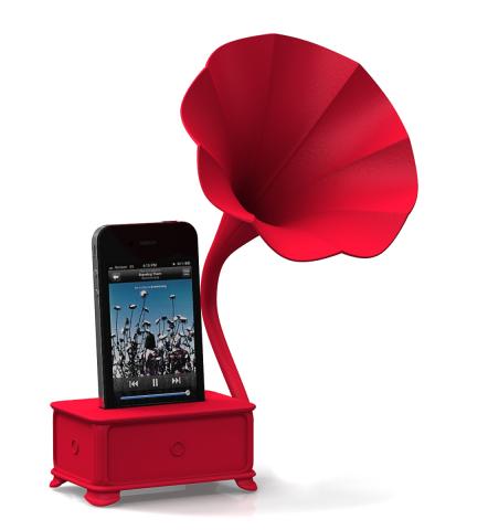 Is that an iPhone? Nope, its a Gramaphone! Well, not quite. It’s the iVictrola and you can find it on Shapeways right here. It’s retro-vintage-throwback item #4,000,000, and it is so cool. At first one thinks the iVictrola is a speaker incased in a retro-vintage-throwback case. Not so! Rather, it amplifies the iPhone speakers via the horn. Original Gramophones of the late 19th and early 20th Century had very weak speaker output, hence the massive horn. The iVictrola was made this way for the same reason, to amplify the sound just like cupping your hands over your mouth to yell louder.