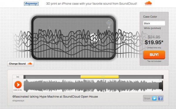 3D printing and iPhone case makers have been working hand-in-hand for the past few years. Now, you can take your favourite songs, turn them into visual waveforms and 3D print them as an iPhone case! The Vibe is a partnership between Shapeways and SoundCloud. Apparently if you use a Nickleback song, it looks like a coil of poo.