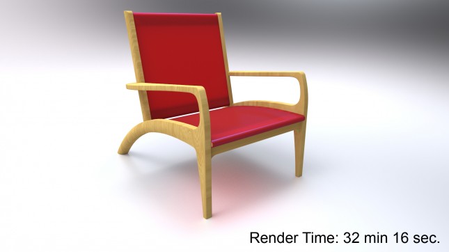Can you spot the differences? You know, besides the times? Not much is there. Really, there isn’t much reason for having a choice between the three, unless you’re specifically offloading a rendering process to one while using another. With all Hybrid rendering times I clocked coming out ahead, there’s obviously some benefit to both being used. One area that did stand out on the CPU version is the highlights on the edge of the seats. They came out more uniform on the CPU rendering, while being skewed slightly on the GPU and Hybrid rendering.