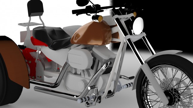 The above rendering is 15 minutes into the process. With a fairly large assembly like this Trike (modeled by GrabCAD member Terry Stonehocker), you might think it easier to set properties using the model tree. If you’re familiar with the model and materials, it might be, but doing this in Shot is very tedious. You are able to copy and past materials between parts, but there is currently no option to create material groups or apply materials to multiple parts. If you want to get a rendering fast, jump to the Materials tab and start dragging and dropping materials.
