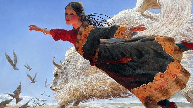 Wondering about Flying yaks? Wang Yiguang is the painter of the Tibetan mystical yak paintings. See more here.