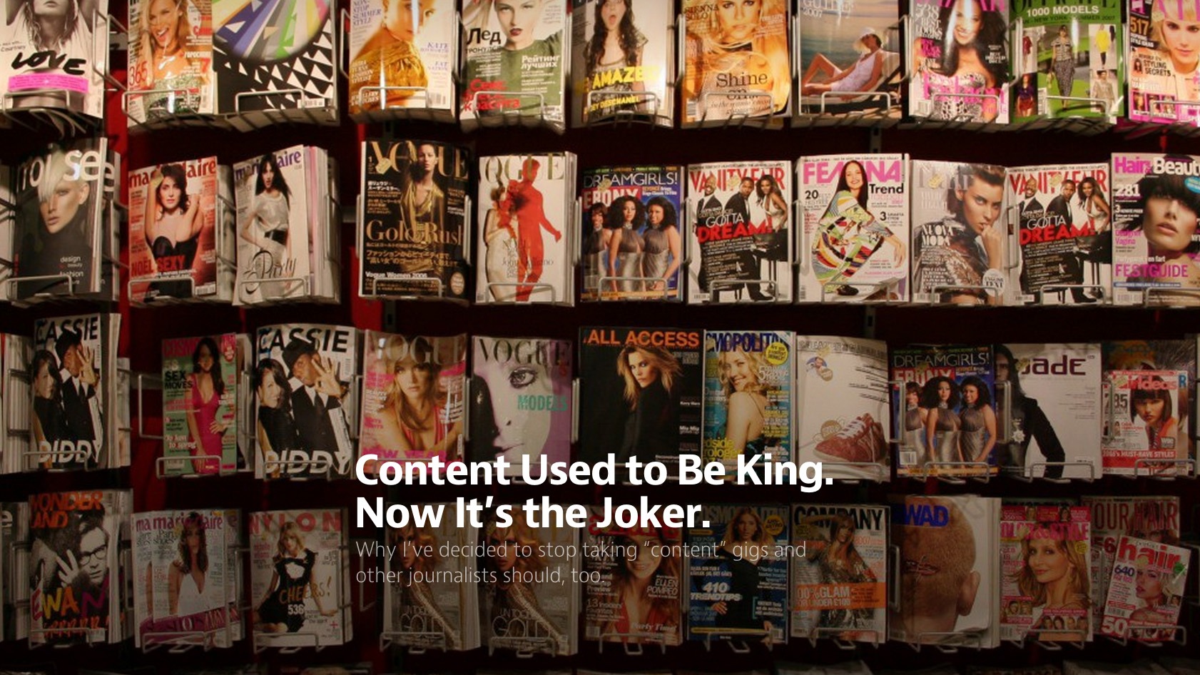 “…publishers are looking for ways to have more and more content (feeding the goat) for less money, because more content means more page views, which enables them to squeeze a few more drops of blood from the stone of online ad sales. So journalists are getting paid more, publishers have stories, and companies get credibility-boosting content. What’s the problem? There are a few.”